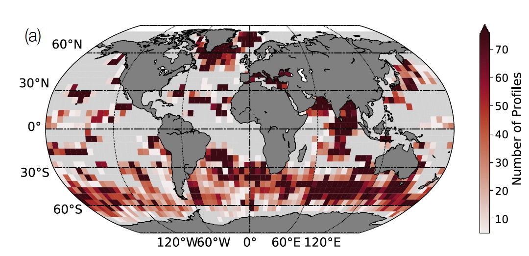 In order to understand how the presence of phytoplankton influences upper ocean heating, we first have to know how they are distributed in the upper ocean. The Biogeochemical Argo program provides an unprecedented opportunity to explore this question in conjunction with clustering methods from machine learning. This work is ongoing and will be submitted for review soon!